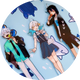 Each individual sticker is approximately 1.25" and is printed on matte vinyl sheet with a die-cut finish. Each pack comes with 3 designs: one of each of Umvvelt's virtual models- Seo, Ryuki, & Nix!